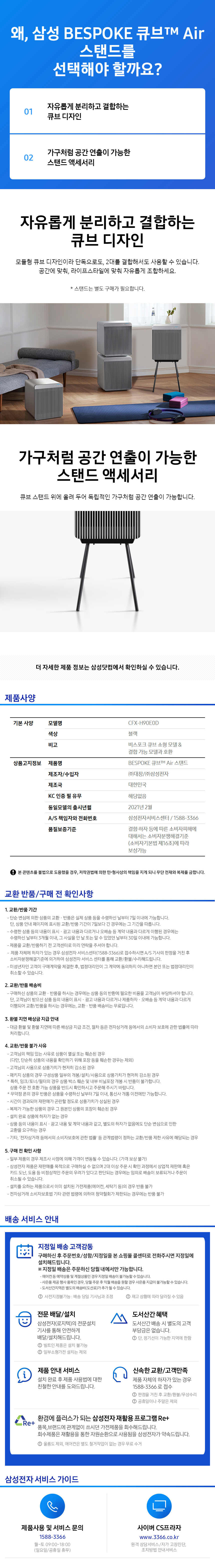 삼성 BESPOKE 큐브™ Air 공기청정기 (53㎡) / AX053B810HND